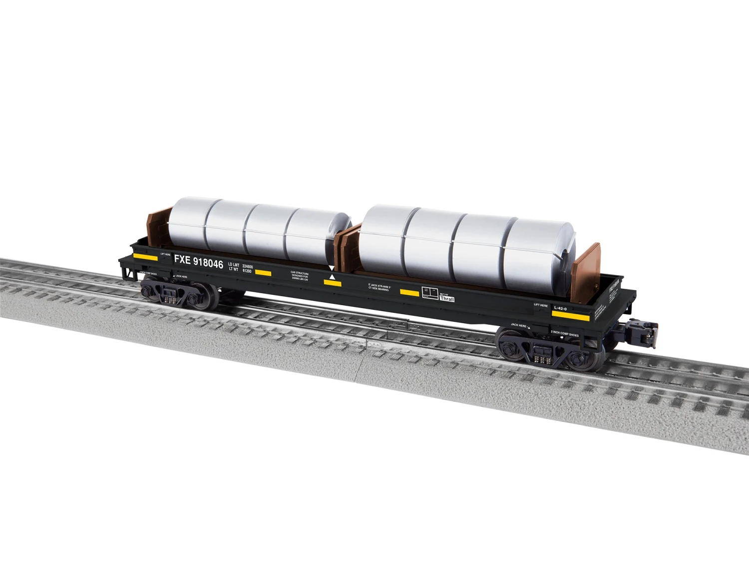These new coil cars will add some diversity to your modern rail car roster. Each includes a removable hood and a 4-pieces coil steel load inside.